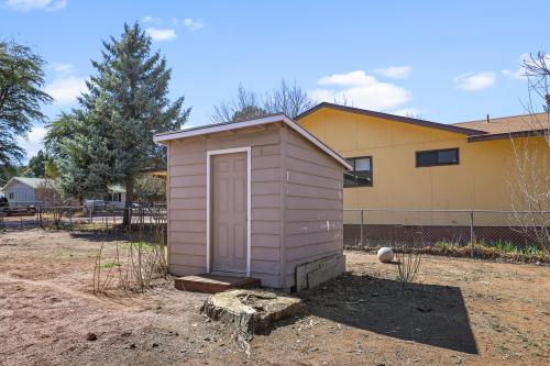 This charming 2-bedroom, 2-bathroom home is perfect for first-time buyers or investors. Sitting on a spacious 0.19-acre lot, the 1,020-square-foot property offers both comfort and convenience. The oversized single-car garage adds extra space for storage or a workshop. The main bedroom features an ensuite bath with a tiled shower. An additional room provides the flexibility to serve as a home office, studio, or workspace. The large mudroom includes space for a washer and dryer, along with additional storage. Outside, the property boasts a storage shed and plenty of room for RV or trailer parking with a gate for easy access. This home offers both practicality and great potential—an opportunity you won’t want to miss!