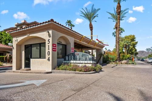 Welcome to your refined desert retreat in the gated Meridian community — a well-appointed 2-bedroom end unit that captures the best of Phoenix living. Bathed in abundant natural light, this residence has been thoughtfully refreshed with new paint, plush new carpet, new water heater, and a beautifully remodeled bath featuring quartz counters and a walk-in shower. The heart of the home is an inviting kitchen, equipped with stainless steel appliances and granite tile counters, flowing effortlessly into a living room anchored by a cozy fireplace and covered patio perfect for year-round comfort. Step outside to your private slate-tiled patio, enjoy peace and privacy with no west-side neighbors, and savor Arizona’s signature indoor-outdoor lifestyle. This community was designed for active, resort-oriented living. Residents enjoy heated pool and spa access, a fully equipped fitness center, BBQ areas, clubhouse spaces for gatherings, and secure underground parking across from the elevator for convenience. Ideally located in the highly walkable 32nd St & Camelback corridor, you’re minutes from premier shopping, dining, world-class golf and the energy of Biltmore and Arcadia areas. This home offers a compelling opportunity to embrace a dynamic, resort-like lifestyle in the heart of Phoenix at a new attractive price point you won’t want to overlook. Location Highlights: Effortless Biltmore living Ideally situated near Phoenix's premier shopping, dining, and world-class golf Interior Highlights: New Paint Throughout New Carpet with Upgraded Padding New Water Heater Gas Fireplace Updated Lighting & Ceiling Fans Throughout Washer & Dryer Included Exterior Highlights: Private Slate-Tiled Patio Overlooks Pool & BBQ Area End Unit - No West-Side Neighbor Located Near Fitness Center, Pool, Elevator & Mailboxes Community Highlights: Gated Community with Controlled Access Heated Pool & Spa Clubhouse & Fitness Center Underground Assigned Parking Elevator Access to All Floors The HOA covers meticulously maintained landscaping, exterior upkeep, water, and trash.