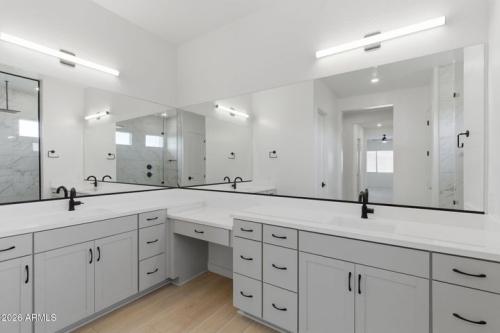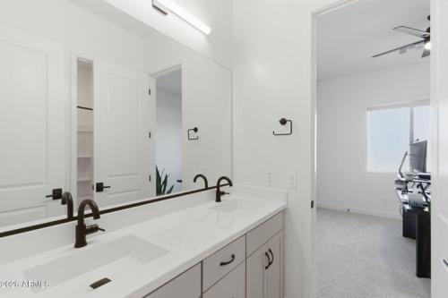 Come enjoy some light Hors d'oeuvres & Wine while touring this incredible premium hillside lot in the beautiful Whispering Hills neighborhood at the base of South Mountain! This Pinnacle Floorplan has over 3600 SF w/4 Bedrooms & 3.5 Bathrooms. Split Bdrms & Home Office. Seller paid for all the right PREMIUM features... Soaring 12' ceiling w/CORNER Sliding Glass Door out to patio, Modern Iron Front Door, Added Exercise/Bonus Rm, Upgraded Flooring, Custom Tile Master Shower w/RainCan Head & Frameless Walk In enclosure. Gourmet Kitchen includes upgraded Cabinets & Quartz Countertops, Beverage Center, Premium Cafe' GE Appliance Pkg: 36' Gas Cooktop, Double Ovens & Commercial S/S Vent. Champagne Bronze TOUCH Kitchen Faucet & Pot Filler. Baths have Matte Black Fixtures w/raised Vanities & Rectangle sinks for a modern look. Make this your new HOME!