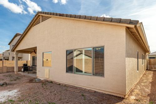 This beautiful single level, split floorplan, 3 bed + den, 2 bath residence in Skyline Ranch is looking for its new owners! Freshly painted inside and out, north/south exposure, great curb appeal, low maintenance landscape, and a 2 car garage are just the beginning. Inside you will find sizeable dining & living areas with tile in all the right places. The eat-in kitchen is open to the family room & comes equipped w/ample cabinetry, a pantry, stainless steel appliances, granite countertops, an island and butler's pantry. The primary suite showcases a full ensuite w/dual sinks , tile shower, garden tub and a walk-in closet. Also included is a nice sized backyard w/a covered patio. The community offers sand volleyball, basketball court and a playground area. This home is a true gem!