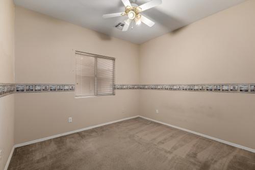 Beautiful Single-Level Home on a Premium Corner Lot with Pool! Situated on nearly a ΒΌ-acre lot, this well-maintained 3-bedroom home with a den offers exceptional indoor and outdoor living. Enjoy an excellent location near community parks, schools, and shopping. Inside, the home features high ceilings and ceiling fans throughout, a spacious great room with gas fireplace, crown molding, and upgraded baseboards. The kitchen showcases ample cabinet space, tile countertops and backsplash, complemented by wood laminate flooring and tile flooring in key areas. The large primary suite includes a bay window, double vanity, walk-in shower, and spacious walk-in closet.