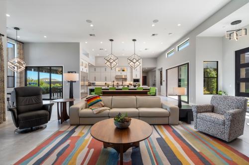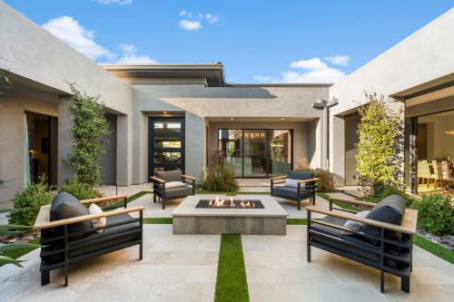 This North Scottsdale residence at Boulder Ranch embodies modern elegance and luxury with the serenity and peacefulness of the Sonoran Desert. A private courtyard welcomes you to an expansive interior with soaring ceilings, custom hardwood shelving. The floor-to-ceiling doors and windows invite in an abundance of natural light. The heart of the home is a chef's kitchen, equipped with waterfall-edge islands, quartz countertops, and high-end appliances, seamlessly blending into the living and dining areas. The primary suite is a private haven with dual walk-in closets, backyard access, and a spa-inspired bathroom featuring a soaking tub, rain shower, and luxury finishes. Additional guest suites and a versatile 1 Bedroom Casita provide ample accommodations for multi-generational living. Outdoor living is elevated with a pool, spa, outdoor kitchen, and heated patios with power shades, creating perfect In-Door, Outdoor Living. The property includes a climate-controlled five-car garage and a Control4 automation system, epitomizing convenience and sophistication. A Truly Breath Taking Residence!!
