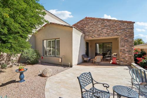 Perfectly located in the gated community of Cachet at Las Sendas with views of a beautifully landscaped open area, you'll love this lock and leave nicely upgraded 3 bed 2 bath 2 car garage single level split floorplan townhome. Exquisite upgrades include engineered wood flooring, 6 inch baseboards, shutters, high ceilings, abundant natural light and extra 6 inch insulation for added efficiency. The versatile great room can be used as a great room or living/dining room and is centered around a cozy fireplace. The kitchen showcases white cabinetry with green accents, slab granite countertops, beadboard finishes, and premium KitchenAid appliances, including a microwave/oven combo, convection oven, flat cooktop, new refrigerator, soft close doors, pullout drawers and a Jenn Air dishwasher. Both bathrooms have been updated with quartz countertops. A murphy bed will convey in the 3rd bedroom as well. The backyard features beautiful views as well as an extended stone paver patio, sun shade, and low maintenance landscaping. The exterior has been updated with a new roof as well. The community of Cachet at Las Sendas offers a heated pool and spa, workout room and clubhouse. Additionally, you will have access to all Las Sendas amenities including, parks, trails, tennis courts, pickleball courts, volleyball and basketball courts, splash pad, 2 additional pool and spa areas and more! Las Sendas backs to Tonto National Park and is just 15 min from the Salt River, Saguaro Lake, minutes from the 202 freeway, 25 min from Sky Harbor and downtown Scottsdale. Don't miss this amazing opportunity to own in Las Sendas!