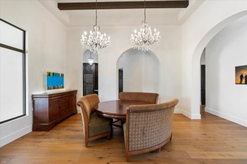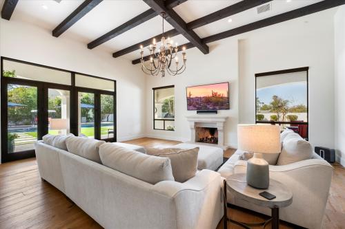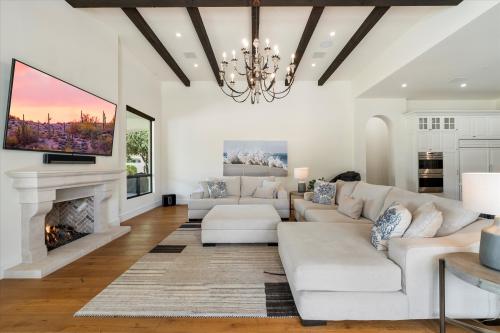 Experience grandeur in this 5,561 sq. ft. Mediterranean estate, a rare find in Paradise Valley's Country Club Acres and the prestigious 3 C's Scottsdale School District. Move-in ready and designed to impress, this 5-bed, 4.5-bath home features soaring 14-16 ft. ceilings, expansive windows, hand-laid wide plank flooring, limestone fireplaces, and designer finishes. The primary suite offers his-and-hers closets and a spa-inspired ensuite with dual vanities, a soaking tub, and a spa shower. The chef's kitchen boasts two islands, Wolf/Sub-Zero appliances, a butler's pantry, and a wine fridge. Set on 52,932 sq. ft., enjoy a resort-style pool, heated spa, patios, pickleball court space, and a putting green. A 4-car garage with an EV charger completes this luxury home.