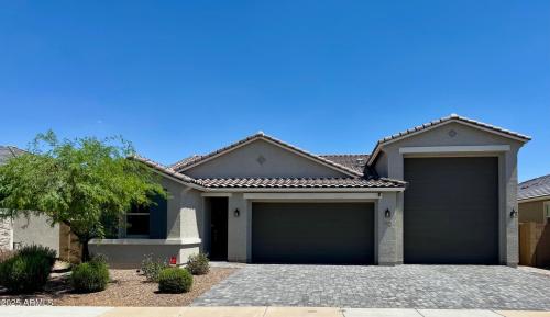 Why settle for builder basics & backyard projects when you can have it ALL—*move-in ready*? Skip the stress (and cost!) of upgrades and landscaping with this 2022 Richmond American one story home. Energy efficient (HERS rating 58) and ALL appliances included!, Car or RV lover? The MASSIVE 1,100+ sq. ft. garage includes a 45ft RV bay with dual 14ft powered doors, epoxy floors with 25-year warranty, and room for all your toys. Brand new backyard just completed with over 950sf of pavers extended from the covered patio and over to the backside upgraded powered RV garage door. 800+sf of high-end artificial turf, 3/4" landscape rock, drip lines, trees, shrubs. Inside gets better with over $50K in builder upgrades. This one level has a modern open split floor plan with a private primary bedroom at the back of the home and 2 additional bedrooms towards the front. The upgrades start with the staggered plank tile flooring (Vicinity brown 36"x6") throughout most of the home, builder upgraded cabinet hardware and finishes with oversized center island and plenty of storage with huge walk-in pantry, natural stone kitchen countertops with beveled edge finish and Santorini backsplash tile with a platinum grout, GE stainless steel appliances (Refrigerator included). Both bathrooms include upgraded tile in the primary shower and secondary bathtub and fixtures, upgraded Craftsman 2 panel Glass & Shelf front door, upgraded built-in laundry sink/cabinets. Brand new upgraded 39 oz. Triexta pattern carpet and ½" memory foam padding in all 3 bedrooms and closets all with a 25-year wear warranty from Lifeproof. Move-in ready!