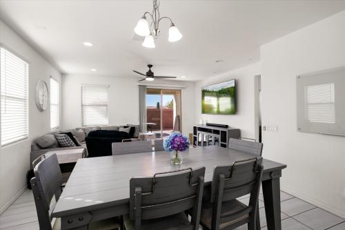 Our Premier showing on this home is scheduled for February 21st. You don't want to miss out on this one. Neighboring home listed for 20K more. The front guest bedroom is split. 2nd bathroom has a deep tub. Internet wired to each room. Tankless hot water. Water Softener, Solar loan balance to be paid at COE. Kitchen with center island, gas stove, quartz countertops, and large pantry. Great Room for family gatherings and leads to outdoor patio extended with pavers for additional outdoor entertaining. Inside laundry (washer and dryer do not convey), and a special surprise for those buyers who can't get enough storage. Easy access to 303 for your traveling needs. Call me for more information.