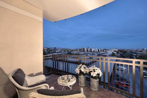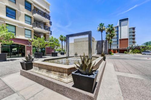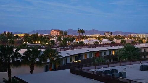 Wake up to PANORAMIC MOUNTAIN VIEWS in this Luxurious 5th-floor residence at the prestigious Mark Condo Building! Perfectly situated in the heart of the Historic Old Town Scottsdale Arts District this highly desired living is designed for those who value both elegance & experience. This Beautifully Remodeled 2 Bedroom & 2 Bath home offers an effortless blend of luxury and comfort. The Gourmet Kitchen was Partially Remodeled in 2021, features Upgraded Cabinetry, White Granite Countertops, a Walk-In Pantry, Premium Stainless Steel Appliances including a Viking Gas Range and GE Monogram Refrigerator ideal for entertaining or quiet evenings in. Spa-inspired Bathrooms, Travertine and Luxury Vinyl plank flooring, designer lighting, All New Ceiling Fans, and a Tiled patio create a sophisticated retreat. Just steps from world-class shopping, dining, art, and nightlife. Enjoy breathtaking panoramic views of the Superstition Mountains and Four Peaks by day and dazzling Scottsdale city lights by night from this exceptional residence at The Mark. Residents are pampered with daily concierge service, a highly secure building with state-of-the-art building security, a Secure Underground parking garage, and Two Reserved parking spaces. The Mark features a Fully Remodeled Heated Rooftop Pool & Spa, as well as a first-class BBQ area. (The Full Remodel of the Rooftop was Completed in 2024) Ownership also includes Full access to the iconic Valley Ho Hotel amenities, featuring room service, a 20% discount at The ZUZU Restaurant and The Valley Ho Spa, plus a 20% discount on guest rooms and suites. The HOA Fee covers A/C & Heat, Electricity, Internet, Water, Security, Concierge services, Lobby Coffee Bar, Building Pest Control, Fitness Center, and all Rooftop amenities. This is true lock-and-leave luxury living in one of Scottsdale's most sought-after and iconic locations.