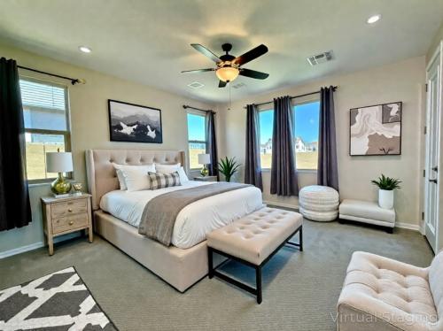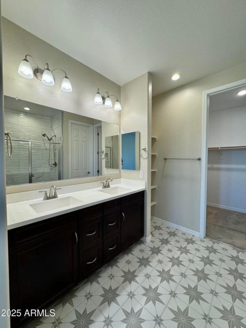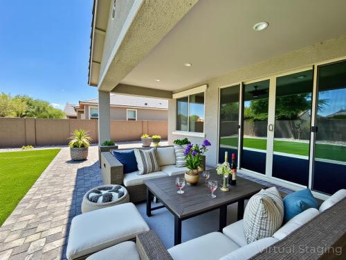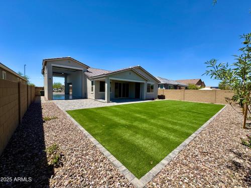 Why settle for builder basics & backyard projects when you can have it ALL—*move-in ready*? Skip the stress (and cost!) of upgrades and landscaping with this 2022 Richmond American one story home. Energy efficient (HERS rating 58) and ALL appliances included!, Car or RV lover? The MASSIVE 1,100+ sq. ft. garage includes a 45ft RV bay with dual 14ft powered doors, epoxy floors with 25-year warranty, and room for all your toys. Brand new backyard just completed with over 950sf of pavers extended from the covered patio and over to the backside upgraded powered RV garage door. 800+sf of high-end artificial turf, 3/4" landscape rock, drip lines, trees, shrubs. Inside gets better with over $50K in builder upgrades.