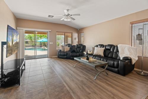 Beautifully maintained single-level 3 bed + office/den, 2 bath home nestled on a premium SE-facing lot backing to a quiet desert wash with no neighbors behind. Original owners have kept this home in great condition. Light and bright with a desirable open-concept layout, the home features spacious living areas, large bedrooms, and a dedicated office/den. The kitchen and great room flow seamlessly to the backyard, perfect for entertaining or relaxing. Enjoy outdoor living with a sparkling pebble tech pool, deep lot, extended covered patio, and peaceful desert views. Prime location near Desert Ridge Marketplace, High Street, top-rated schools, and easy access to the 101 & 51 freeways. Don't miss this ideal blend of privacy, comfort, and convenience.