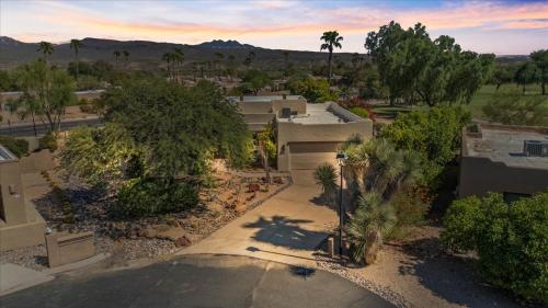 Updates include new plank flooring in all bedrooms/office. Inviting kitchen that makes meal prep a delight with updated stainless-steel appliances and an induction stove. New modern light and bath fixtures, ceiling fans and window screens. A touch of character with a few stained-glass windows thoughtfully placed throughout the home. Home is solid block construction with fresh paint interior and exterior and the roof has been recoated/sealed in 2024. For covered parking you have a 2 ½ car garage yielding plenty of storage room. The backyard has a wraparound patio for entertaining guests with views in every direction complimented with a bounty of lush landscaping including mature citrus trees, privacy shrubs/plants all situated on a 17,700+ sf golf course lot. Ownership in Rio Verde means enjoying time with family and friends, surrounded by mountain vistas, open spaces, and golf course views. The community offers a blend of privacy, serenity, and access to top-tier amenities while enjoying the peace of the desert. The Rio Verde country club, with its two 18-hole golf courses, fine dining and community amenities, will cure any boredom. Book a tour today and view this beautiful property and experience what this home and community has to offer.