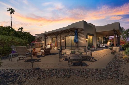 Nestled in the beauty of the desert and just minutes from Scottsdale, Rio Verde 55+ Country Club offers an inviting community where every day it feels like an escape. This premium one level golf course home sits on a huge private cul-de-sac pie-shaped lot overlooking the second green on the White Wing course and has both 4 peaks mountain range and golf course views spanning 180 degrees, the type of views that make morning coffee or evening cocktails taste even better! Inside this 3-bedroom (one is designed currently as an office with double doors) and 2 full bathrooms you will find soaring 12-foot ceilings with rich wood beams in the great room, scenic views from every window and Saltillo tile giving the right amount of Southwest flare.