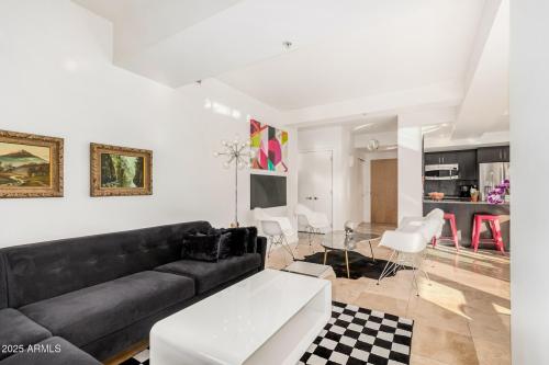 RARE CORNER UNIT WITH 2 PARKING SPACES, 2 BALCONIES AND BOTH COURTYARD AND MOUNTAIN VIEWS. Stunning home in Scottsdale. Walk to Fashion Square, Old Town, and Waterfront. Floor to ceiling windows to let in all the natural light your heart desires. Open concept kitchen is complete with granite countertops, premium stainless steel appliances and gas range. Master suite has plush carpet and a private exit to balcony to enjoy your morning coffee. Living room balcony has ample room for entertaining or lounging. Community amenities include 2 heated pools and spas, indoor pool, putting green, fully equipped gym, racquetball and basketball courts, party room, dog park and more!! Everything is at your fingertips, come see it today!