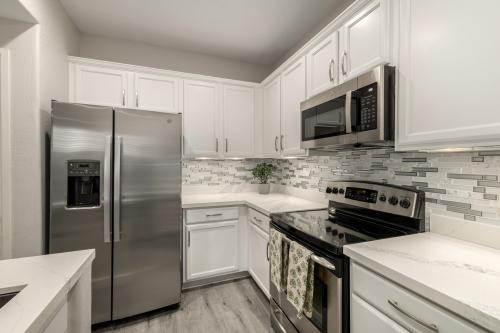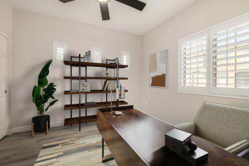 Experience the allure of this elegantly designed condo with its bright and airy ambiance. Neutral-painted walls and luxury grey vinyl flooring create sophistication. A captivating spiral staircase, high ceilings, and exquisite white shutters enhance the aesthetic appeal. Includes a Fast EV charger installed in garage. Numerous upgrades are detailed in the accompanying document section. This complex offers country club amenities for all ages. The HOA covers everything except for APS and your home internet. A great place to lock and leave as a winter visitor or a full time resident. Easy access to both the 101 and 51 freeways along with a plethora of shopping, dining and top notch healthcare at your fingertips. Exterior to be newly repainted mid February.