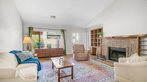 The spacious living room offers a cozy yet open feel, with vaulted ceilings, large picture windows, and a stunning wood-burning fireplace. The dining room provides excellent flexibility and can easily serve as a home office, sitting room, or additional living space to fit your needs.