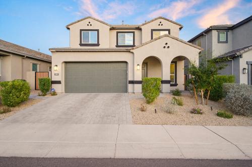 This stunning 2024-built home showcases the popular DR Horton 'Crow' floor plan in the highly coveted Talinn community, one of the premier neighborhoods in Desert Ridge. Perfectly positioned on a premium view lot backing pristine state land, the property offers unobstructed desert privacy and breathtaking McDowell Mountain views. The east-facing backyard captures spectacular Arizona sunrises and glowing mountain sunsets and is designed for true resort-style living. Enjoy a newly installed heated pebble tec pool and spa with Pentair automation, in-floor cleaning, custom gas fire pit, view fencing, a private side patio with tranquil fountain, Rachio smart irrigation, and Sunbrella outdoor furnishings. Inside, this 4-bedroom plus den/office home is loaded with upgrades and smart-home eatures, including a Rinnai tankless water heater, Envirotec water softener, reverse osmosis system, Cox fiber internet, ADT security with Google Home integration, Google doorbell and cameras, Z-Wave smart controls, Hunter ceiling fans, Sonance in-ceiling speakers, stainless steel appliances, Electrolux washer and gas dryer, mounted TVs, and a two-zone HVAC system. The epoxy-coated 3-car tandem garage is equally impressive, featuring a side-by-side refrigerator and two NEMA 14-50 outlets for Level 2 EV charging.