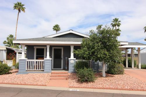 ANOTHER GREAT MANUFACTURED HOME IN A QUIET PARK WITH GATED ACCESS AND CLOSE TO LOTS OF LOCAL CONVENIENCES. WALK TO THE POOL, COMMUNITY CENTER, QUICK TRIP TO GROCERY & OTHER SHOPS. NICE SIZED BEDROOMS, EXTRA BONUS SPACE FOR LOUNGING IN PRIMARY BEDROOM, COVERED BACK PATIO AND BEAUTIFUL FRONT PORCH. COVERED PARKING AND STORAGE SHED WITH A/C, INSIDE LAUNDRY TOO ! GREAT PRICE , COME SEE IT SOON !
